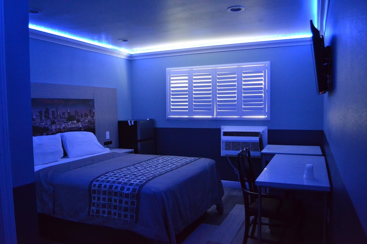 This Motel is like a hotel it’s very nice inside very clean affordable pricing. One of the features I like is this colored lighting in the ceilings pretty awesome!